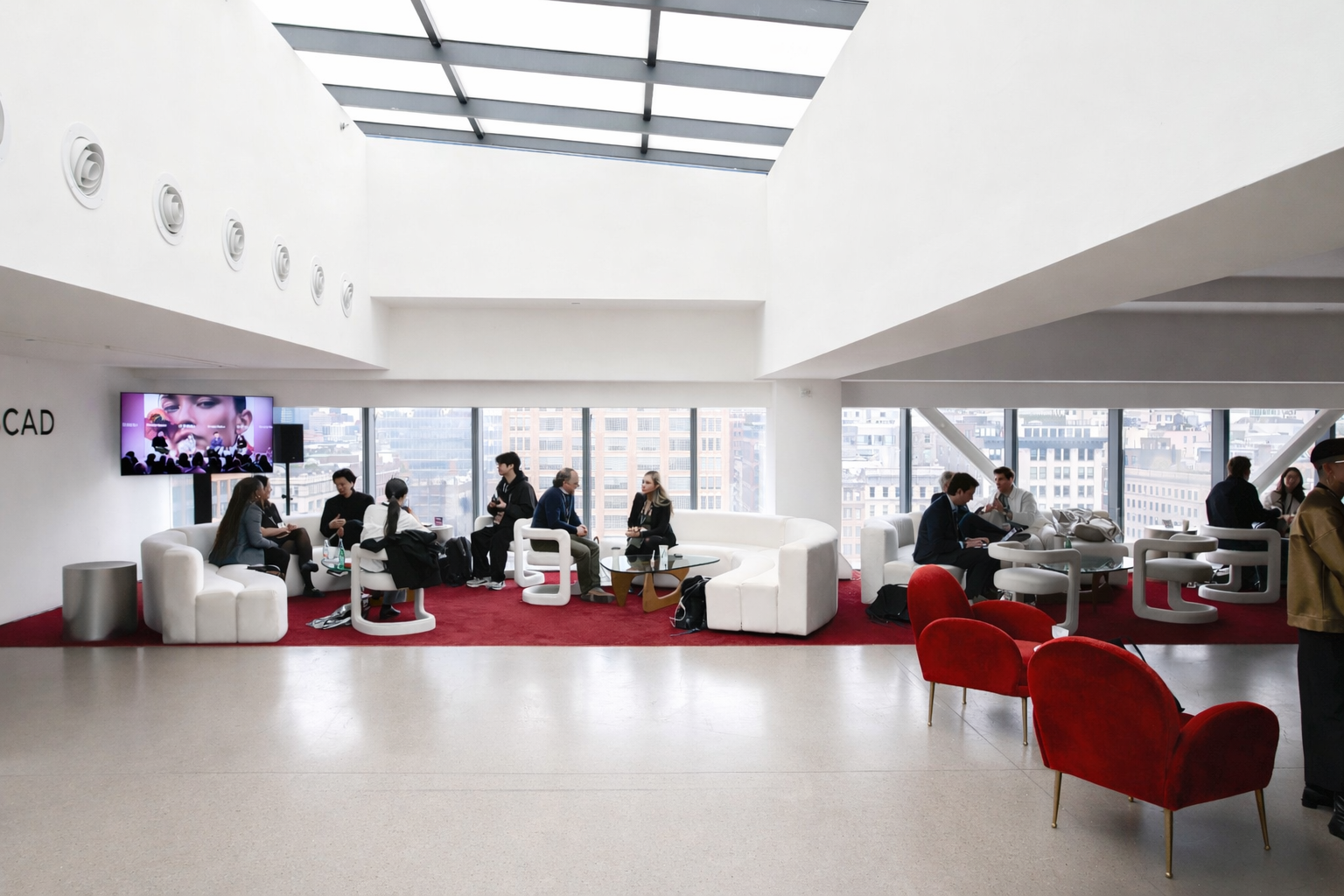 This discreet space is at the top of the building with skylights flooding the room with light — and a wall of smart glass windows that can look into Studio 4 below or remain opaque. It is tucked away at the top of the iconic central staircase with lower ceilings than our other spaces. A more intimate space for shoots and gatherings with a smaller footprint. One half flight up brings visitors to the roof. .